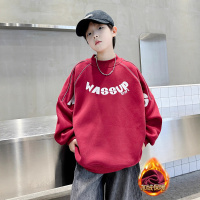 男童加绒卫衣秋冬款新款加厚安哥拉红年服儿童一体绒打底衫潮