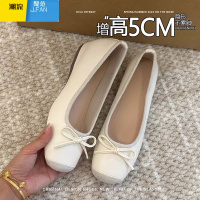 聚范小个子内增高方头红色平底单鞋女夏季新款蝴蝶结芭蕾风复古豆豆鞋