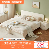 全友家居奶油风简约花瓣生态科技皮软包床屏双人床实木高脚卧室家具