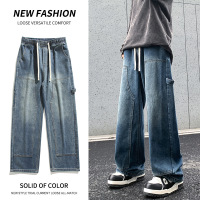 潮牌牛仔长裤男 美式复古做旧水洗裤 男士宽松直筒阔腿裤工厂直供