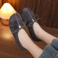 头层牛皮2026春季新款复古磨砂皮平底透气串绳一脚蹬软底森系单鞋