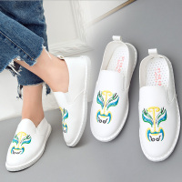 街拍小白鞋女夏2017秋季新款韩版百搭学生休闲鞋一脚蹬皮面帆布鞋