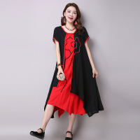 Kruidvat 奈琴尔2016年春夏新款 民族风刺绣棉麻连衣裙宽松假两件女装长裙夏B030