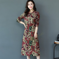 莞馨2017秋季新款大码女装复古印花文艺圆领长袖宽松民族风连衣裙