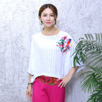 薇侣2017新品夏季女装民族风绣花图案宽松大码蝙蝠衫短袖t恤休闲上衣