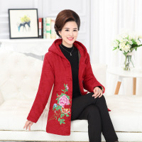 中老年女装加厚中长款棉袄妈妈装绣花秋冬棉衣加大码民族风外套
