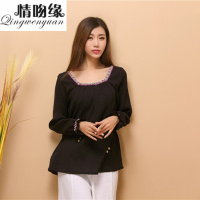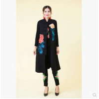 2017春秋季中式民族风女装刺绣花长款外套女立领盘扣棉麻马甲上衣