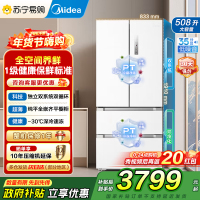 美的[真香系列]508法式多门60cm超薄零嵌四开门双系统底部散热冰箱国贴20%BCD-508WUFPZM(E)星尘白