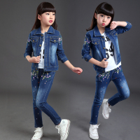 童装女童春秋装套装韩版牛仔外套裤子儿童秋装2017新款牛仔两件套