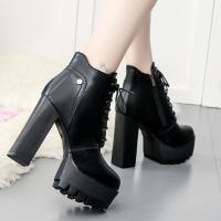 2017秋冬季新款女鞋超高跟马丁靴潮女短靴粗跟短筒百搭单靴女靴子