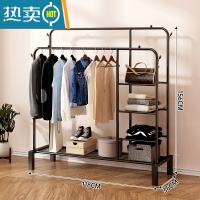 敬平晾衣架落地阳台家用挂衣服晒被子器卧室简易晒衣架子室内晾衣杆 [黑]固定款★侧三层★衣帽钩★长1.18米 中