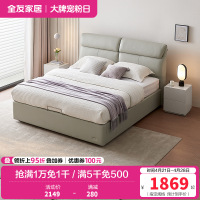 全友家居现代极简进口头层牛皮松软大靠包卧室家具皮床1.8m皮艺床软床