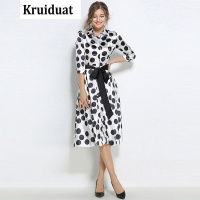 Kruidvat翻领七分袖黑白波点珠光罗马系带长裙YLMK图片色