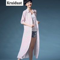 Kruidvat2017春季新款韩版时尚波点长款中袖翻领修身雪纺衫M7白色