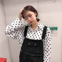 珂依舍2017秋装新款实价韩版翻领波点单排扣宽松百搭衬衫学生女