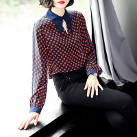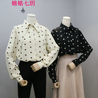 锦铭七玥比正 2018春季新款 韩版女装气质 波点长尾翻领衬衫女式长袖