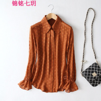 锦铭七玥2018新款翻领真丝个性波点透视喇叭袖百搭舒适真丝女士衬衫衬衣