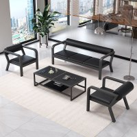 慧采云 办公家具钢架沙发办公沙发现代简约商务接待会客皮沙发组合