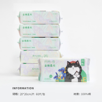 洁玉 吾皇猫联名款100%棉60抽棉柔巾20*20cm 6包装 J5923+6