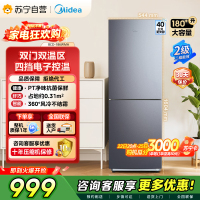 [自营]美的(Midea)180+双开门两门榭湖银双门冰箱 180升净味杀菌自动除霜风冷无霜三口之家