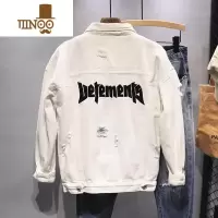 YANXU破洞牛仔外套男士ins潮牌痞帅白色夹克韩版休闲男装上衣服