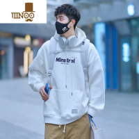 YANXU禁欲系男装上衣宽松外套白色连帽夹克男潮ins2023新款卫衣