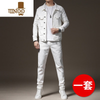 YANXU潮牌白色牛仔外套男休闲套装秋季男装一套搭配成熟牛仔套装男