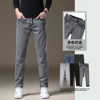 烟灰色经典弹力修身小直筒牛仔裤男百搭水洗老钱泥灰牛仔裤男_255
