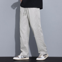 抽绳直筒休闲裤男浅灰刺绣字母裤春夏薄款透气裤子阔腿休闲裤