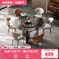 全友家居现代简约餐厅钢化玻璃岩板可选可伸缩餐桌方变圆功能圆餐桌椅