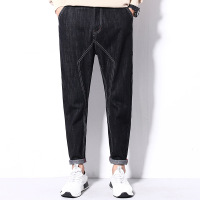 莞馨(wanxin)新款欧美简约立体剪裁菱形明线牛仔裤男修身小脚牛仔哈伦裤潮牌男裤子