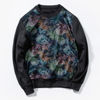17秋冬新款潮男花卉网纱黑色外套欧美简约青年套头圆领卫衣男黑色