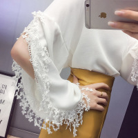 珂依舍2017秋装新款现货秋装新款韩版露胳膊蕾丝边上衣加洗水皮包裙套装
