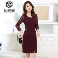 2017秋装新款修身长袖蕾丝拼接中长款连衣裙显瘦女装包臀裙