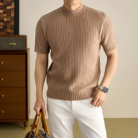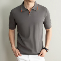 夏季新款男士亲肤透气轻薄商务圆领休闲简约纯色翻领短袖T恤