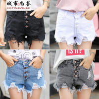 高腰白色牛仔短裤女宽松阔腿热裤学生显瘦a字短裤大码毛边薄款