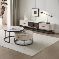 全友家居现代极简高低错落高矮圆茶几钢化玻璃储物电视柜客厅家具