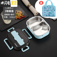 三维工匠304不锈钢饭盒便当盒密封学生食堂餐盘带盖便携分隔型上班族餐盒 小号蓝色两格(送勺筷+饭盒袋)