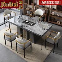 锦北茶桌椅组合现代简约岩板茶台烧水壶2.0米单桌+1官帽椅+2梳背椅