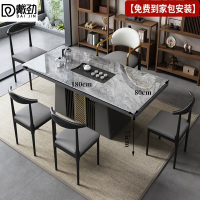 戴劲茶桌椅组合现代简约岩板茶台烧水壶1.8米单桌+1轻奢椅+4牛角椅