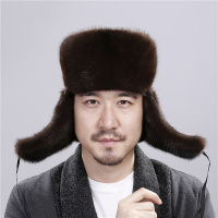 水貂毛整貂皮草帽冬季保暖护耳帽男士新款火车头羊皮帽雷锋帽深棕色可调节