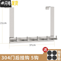 三维工匠免打孔304不锈钢钩后挂钩框挂衣架卧室上衣架挂钩卫生间 5钩(304不锈钢门后7字钩)
