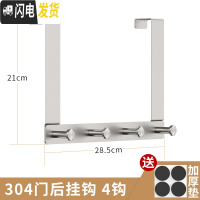 三维工匠免打孔304不锈钢钩后挂钩框挂衣架卧室上衣架挂钩卫生间 4钩(304不锈钢门后5字钩)