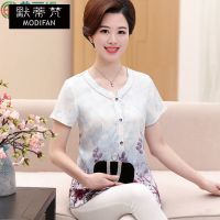 YIBUSHENG棉短袖T恤女夏季宽松显瘦时尚中年30-40岁妈妈装上衣夏天汗衫潮