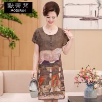 默蒂梵2017新款夏装中老年人女装连衣裙母亲节妈妈装印花短袖裙子