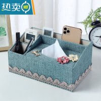 敬平多功能纸巾盒子客厅抽纸盒家用创意茶几遥控器布艺网红收纳盒欧式 梯形蓝绿色