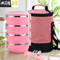 三维工匠多层不锈钢保温饭盒真空超长保温桶四层大容量成人便当盒3/4层 四层粉红配红圆柱袋加餐具
