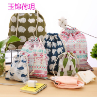 纯棉旅行收纳袋束口袋 zakka抽绳行李袋棉麻布艺家居收纳袋
