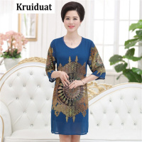 Kruidvat短袖女式真丝连衣裙韩版宽松太阳花宽松中长妈妈裙Z010