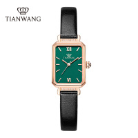 天王女士手表石英表轻奢复古小绿表防水皮带女表送女友老婆生日礼物推荐31283